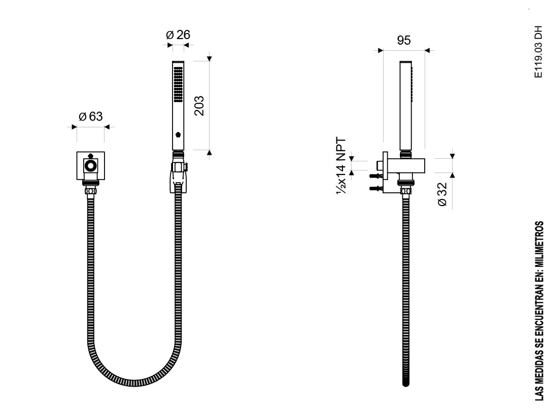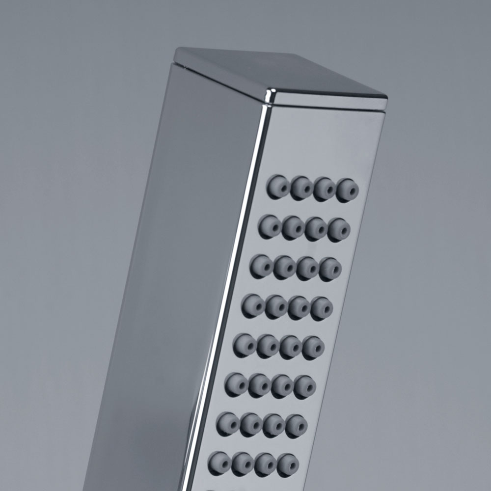- Ducha manual y soporte fabricados en ABS cromado.